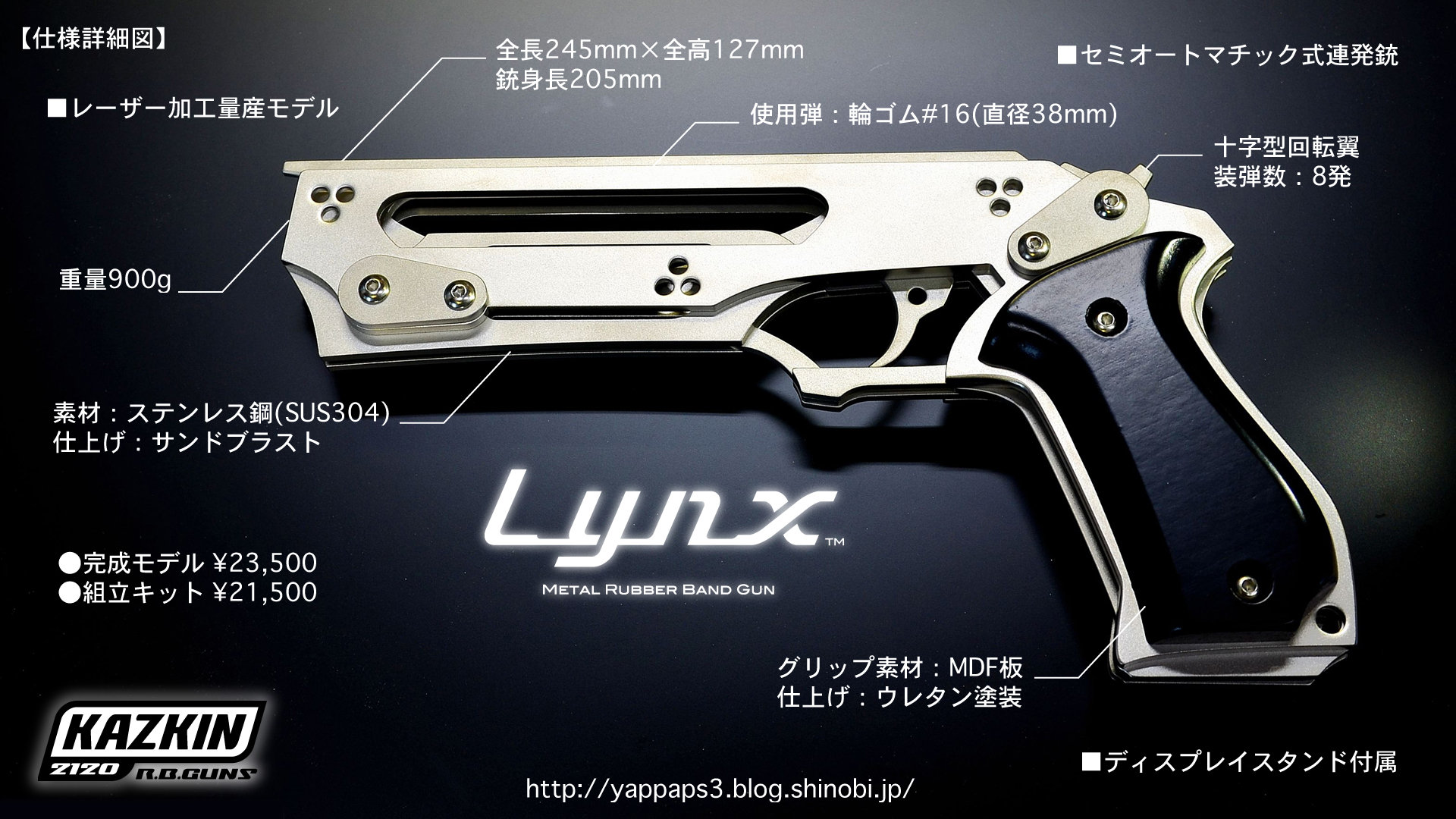 【欲しい】輪ゴムを8つ装填し連射できるステンレス製ホビーガンが発売決定!なにこれかっけぇwwwwwwww