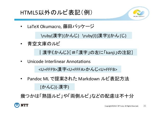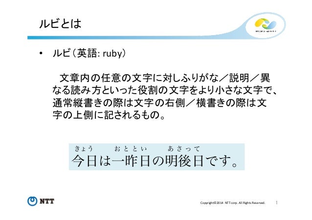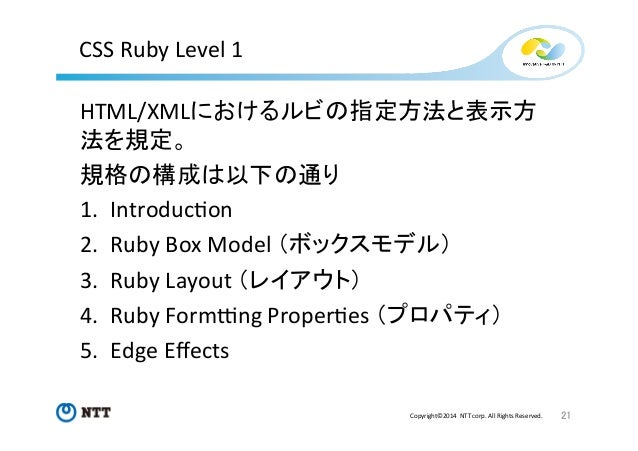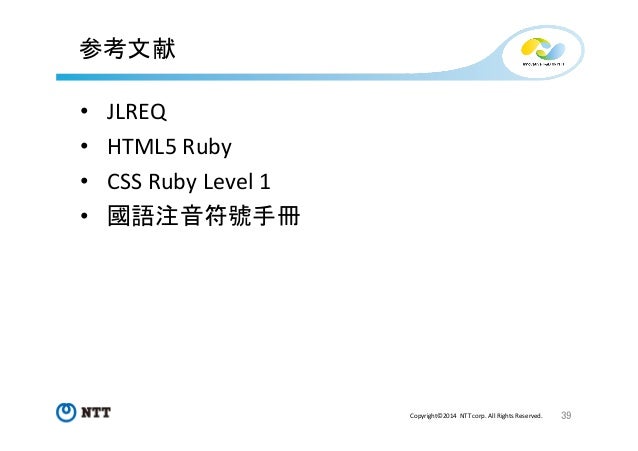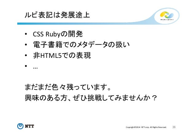 TeXユーザの集い2014 発表資料(W3C Ruby) Follow by Taichi Kawabata , System Engineer at NTT Communications on Nov 09, 2014 Tweet 288 views ルビのWeb標準化における現状と課題 Show more ルビのWeb標準化における現状と課題 Statistics Views Total Views 288 Views on SlideShare 255 Embed Views 33 Actions Likes 2 Downloads 4 Comments 0 1 Embed 33 https://twitter.com 32 Accessibility View text version Categories Technology Upload Details Uploaded via SlideShare as Adobe PDF Usage Rights © All Rights Reserved Report content Flagged as inappropriate Flag as inappropriate Flag as inappropriate Select your reason for flagging this presentation as inappropriate. None Pornographic Defamatory Illegal/Unlawful Spam Other Terms Of Service Violation Cancel File a copyright complaint Show less
