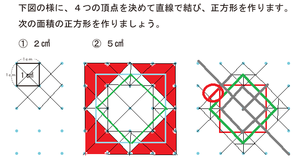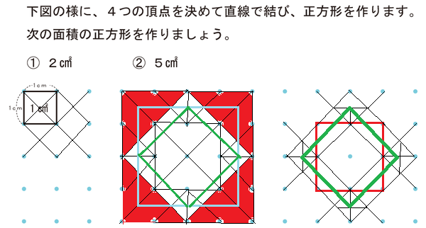 次の面積の正方形を作りましょう