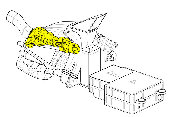 ターボの上には、コンパクトで低いラインに吸気口のプレナム・チャンバーがある。チャンバーの高さを低くするため、この給気口は内側では90度曲がっているが、可変長の吸気口トランペットが設置できだけの高さがある。
