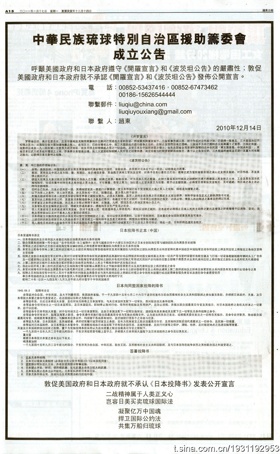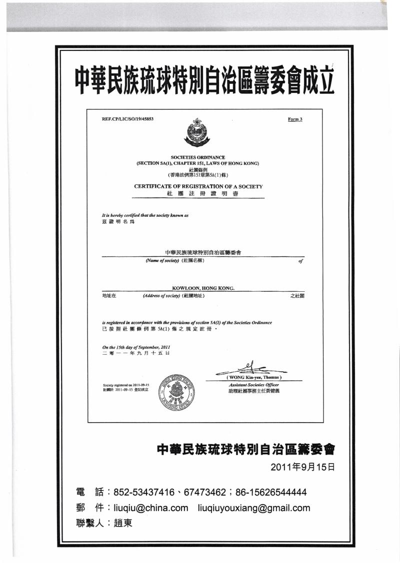 5年前に中国で「中華民族琉球特別自治区設立援助準備委員会」なる組織が立ち上がってから