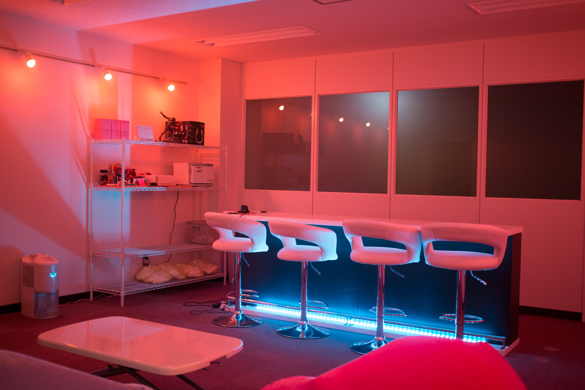 悪ノリしてカウンターの下にLEDバーもつけてみましたが…なんだろう、このいかがわしい夜のお店の雰囲気。