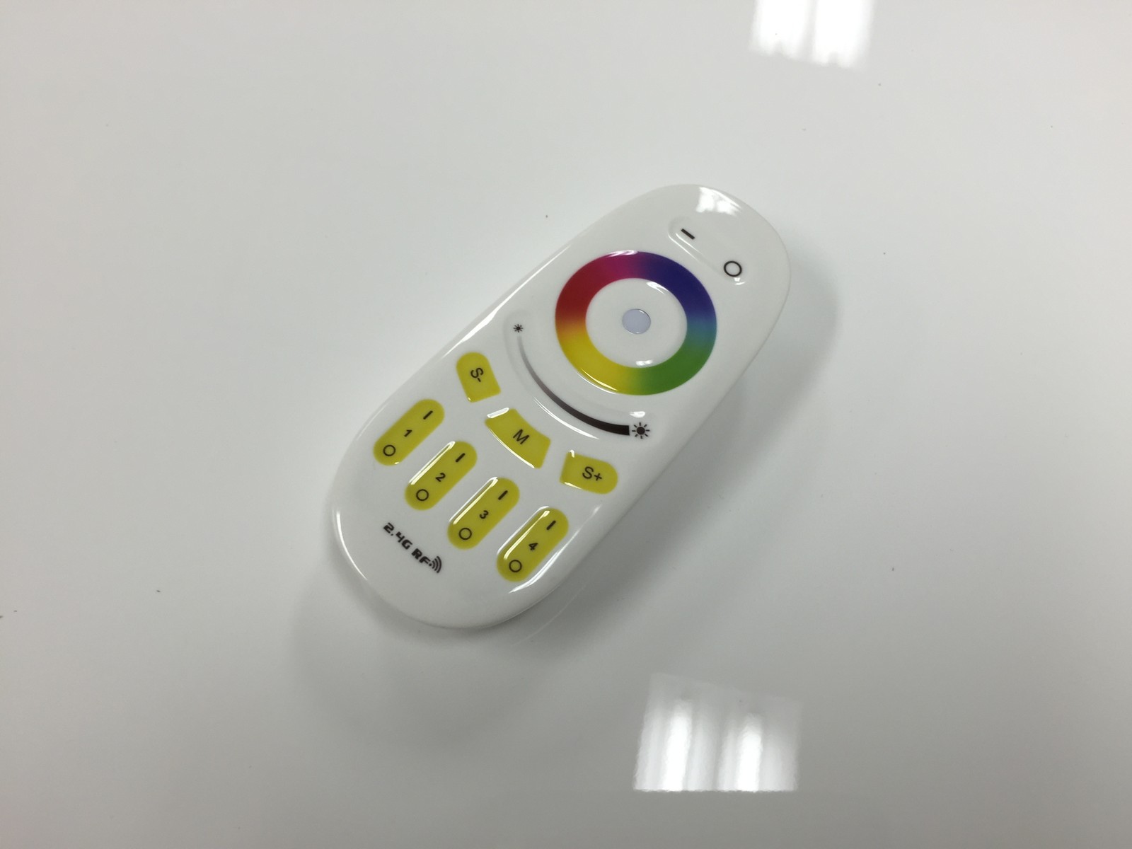 通信方式はよくわかりませんが、恐らく無線で、1個のリモコンで一度に全部の電球の動作を変えられます。