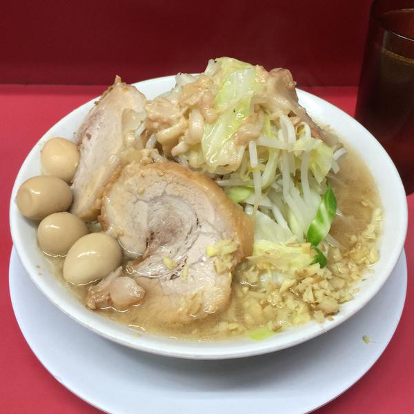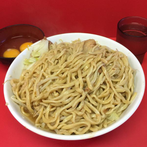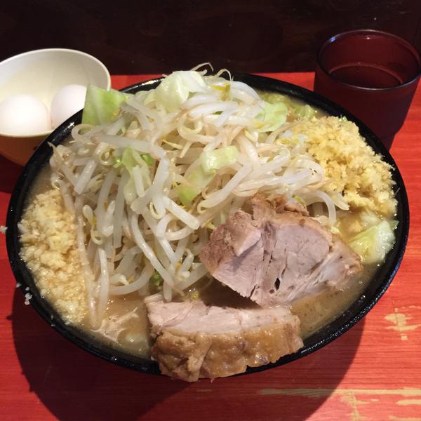 平成27年6月5日金曜日、ラーメン二郎 会津若松駅前店、大ラーメン+しょうが+生たまご+生たまご ニンニク 900YEN