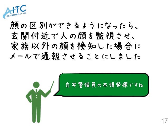 AITCオープンラボ 第5回IoT勉強会~人工知能xIoT~ 「IoTとDeep Learningで 自宅警備員を育ててみる」の資料です