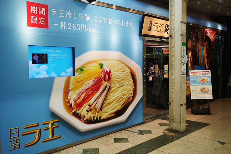 日清の『ラ王』といえば「まるで生麺」のようなテイストを堪能できるインスタントラーメンだが、その冷やし中華をその場で食べられる食堂が、JR渋谷駅のホームで人気を博している。