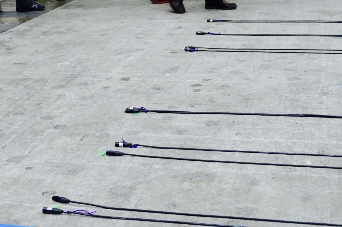 ピンと張られたマイクケーブルは終点で折り返しUの字になっています。これを3本巻いてそのタイムを競います。