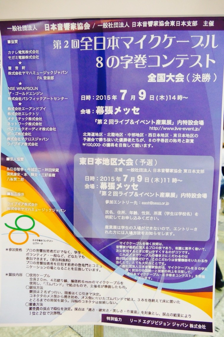 幕張メッセのライブ&イベント産業展の会場で行われた第2回全日本マイクケーブル8の字巻きコンテスト全国大会の決勝戦を見てきました!