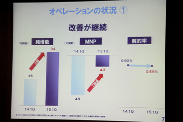 ※第1四半期決算発表会のスライド。今期の純増数は94万契約で、前年同期比で約2倍の伸びとなった