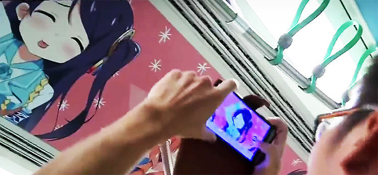 美少女私( ゚_゚)『山手線でも苦手なレベルなんやけど、前に行ったリニモ(リニアモーター)が痛い。駅から壁から外装から車内まで萌えイラストのオンパレードや。科学的興味で乗ったけど慌てて途中の駅で降りたんよ。』