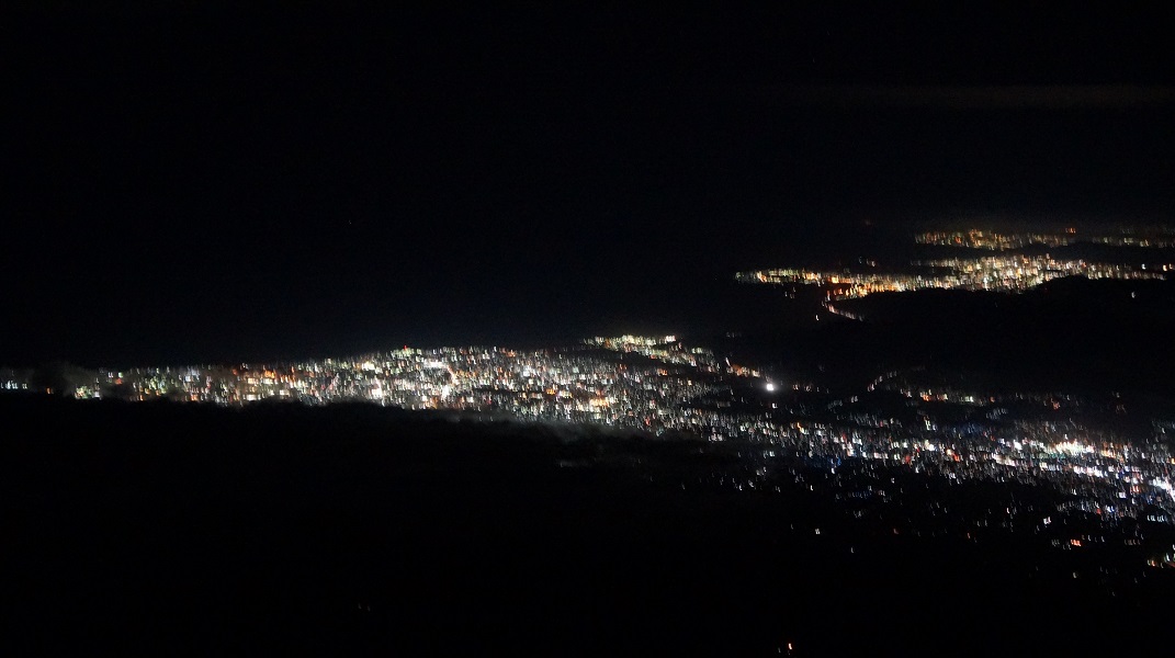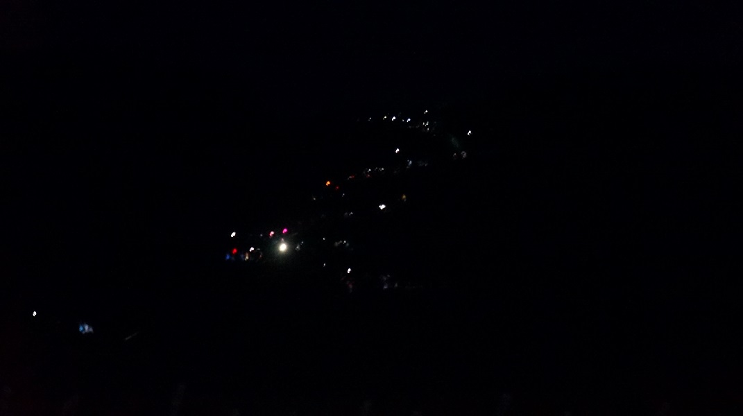 星空じゃないよ。登山者のヘッドライトの列だよ