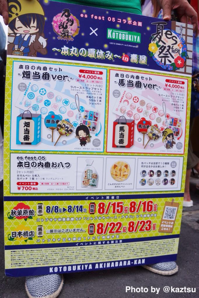 明日よりコトブキヤ秋葉原館にて『刀剣乱舞-ONLINE-×esfest05』物販イベントを開催致します!ご参加の皆様には今一度特設ページをご確認頂けますようお願い申し上げます。goo.gl/95Ay5j #刀剣乱舞 pic.twitter.com/53GSe76N89