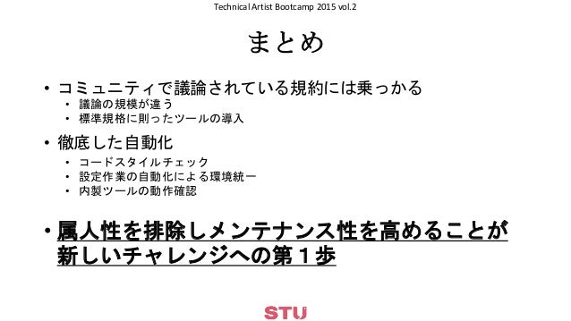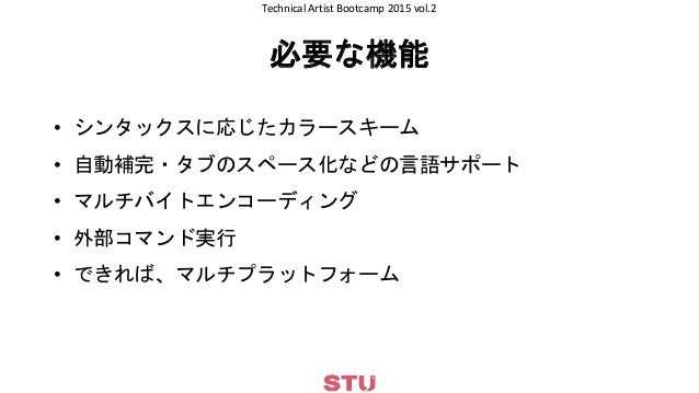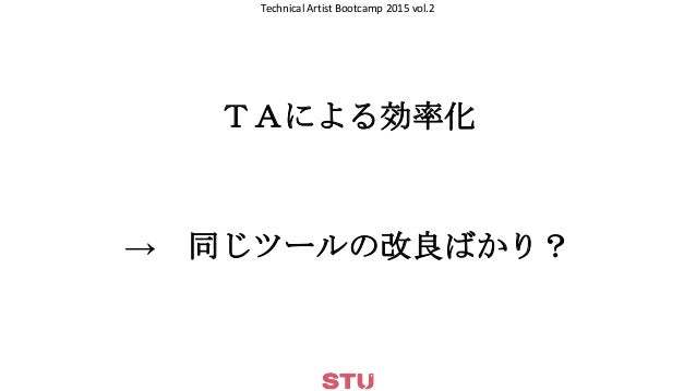 CEDEC 2015 Technical Artist Bootcamp 2015 vol.2 (前半) http://cedec.cesa.or.jp/2015/session/VA/2720.html
