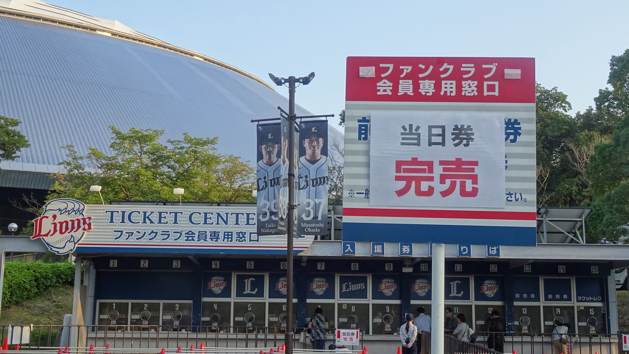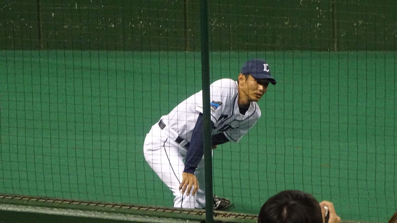 2回頃からブルペンに入った西口は、ストレッチをしたあと、軽く肩を作って試合を見守っていました。味方の攻撃を正座して見守り、またキャッチボールをしました。投げるのか、投げてくれるのか。ライオンズの人々の期待は、試合より西口に向いていたかもしれない。多くの人がマウンドではなくブルペンに視線を送り、あのフォームを写真におさめようと群がっていました。