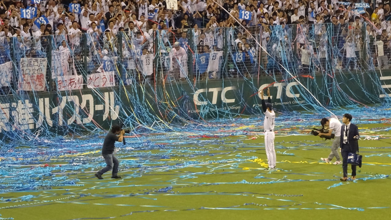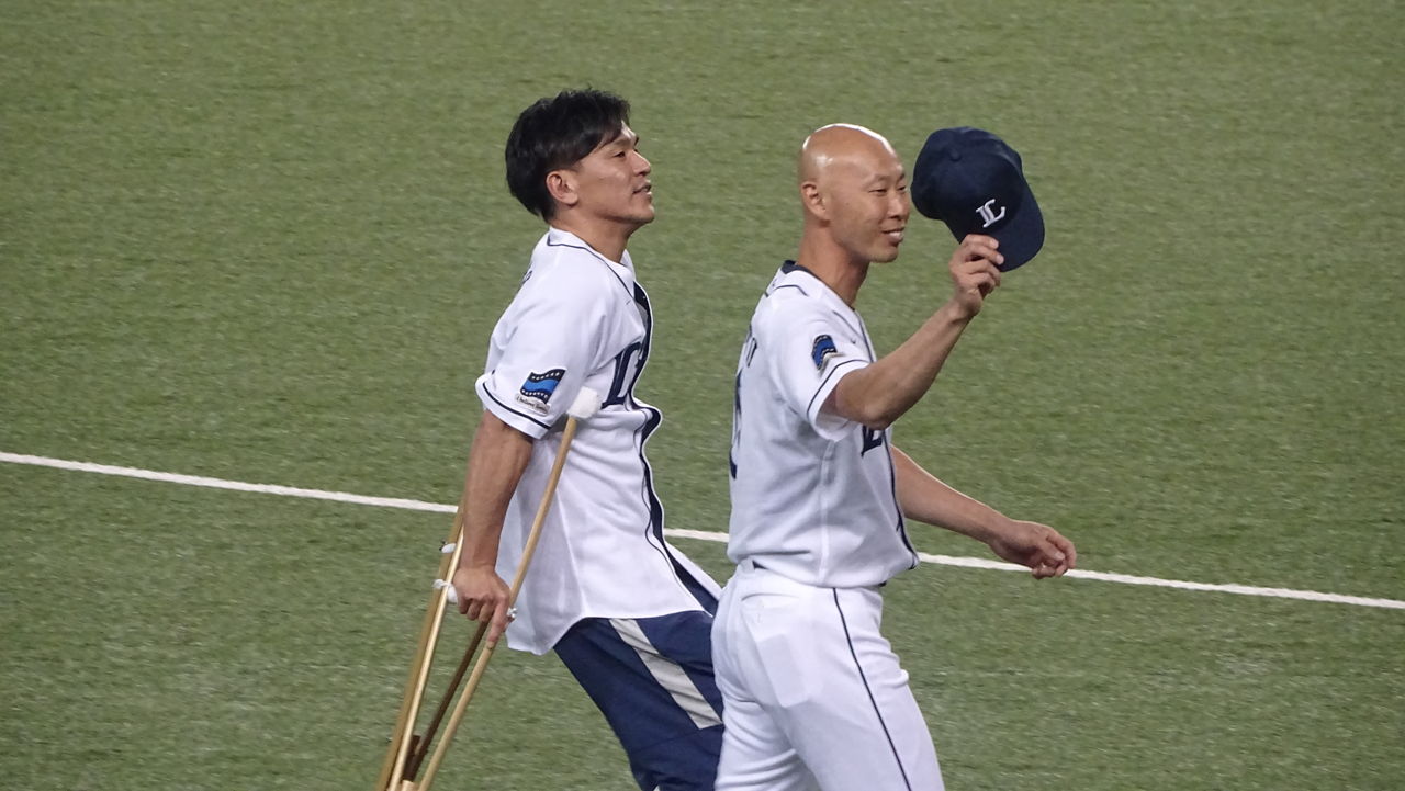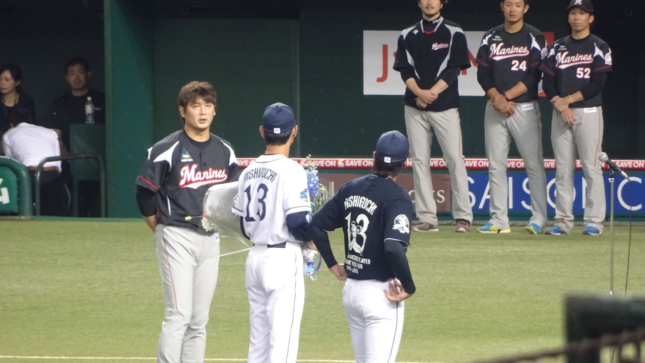 試合部分はあまりにヒドイので割愛しますが、西武はこの色々な意味で大事な試合をスコーンと落としやがりました。水差し用の消防車か何かがウーウーやってきて西口に水をぶちまけていったかのような戦いぶりには、一部のファンがブーイングを始めたほど。どうですか、これが我が西武ライオンズがレジェンドに捧げる試合です。これが現役時代、何度も西口を苦笑いさせてきた、ライオンズの試合です!