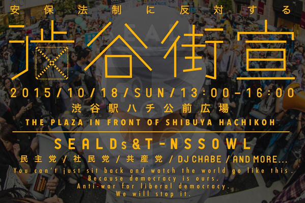 【安保法制に反対する渋谷街宣】10/18(SUN)13:00~16:00 渋谷ハチ公前。