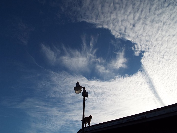 この珍しい雲の中に虹まで見えて、別次元感が強まっている。