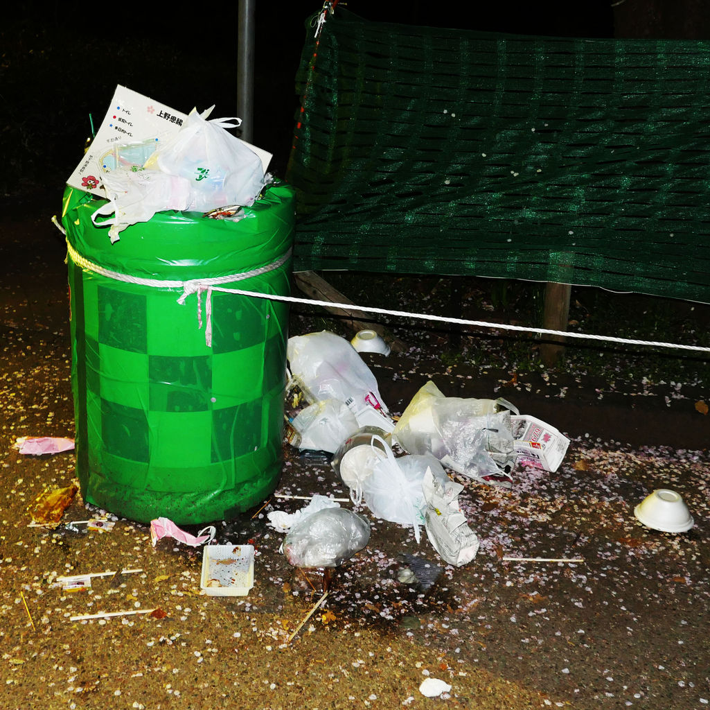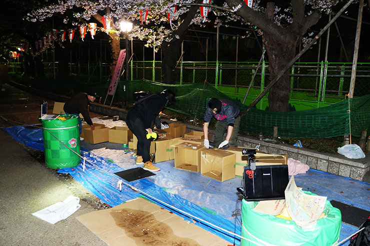 「上野公園がびっくりするぐらい汚い」との情報を聞いたので、2016年4月7日午前1時ごろ、実際に上野公園に行ってみた。汚いとはいえ「大げさに言ってるだけだろう」と思っていたのだが、そんなことはなかった。ゴミは散らかし放題。しかも驚くことに、宴会をしたままゴミも箱もシートも放置したまま、その場を立ち去った集団がいくつもいたのである!
