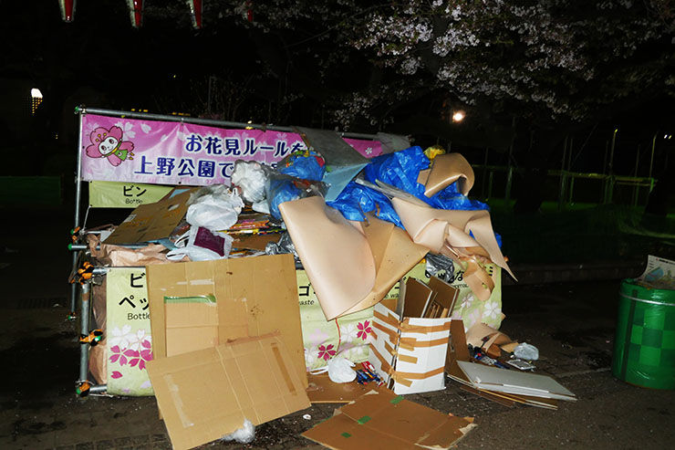 この現実を世界的に報道しろよ。日本には花見のゴミは持ち帰らない文化があると・・・。