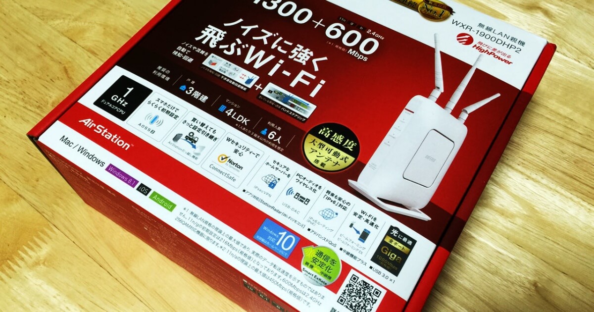 1ヶ月以上前になるんですが、Buffaloさんから2015年12月に発売されたWi-Fiルーター「WXR-1900DHP2」をギフティングいただいちゃいました。