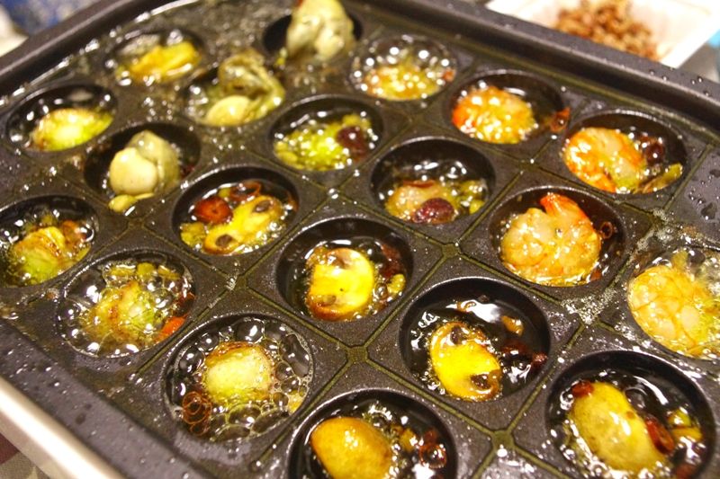 マッシュルームと海老が定番だがナスやカキやタコイカなども多い