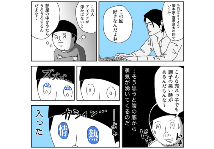 2時間くらいですね。漫画を描いていると、お話の設計図であるネームが編集者に通らないとだめなんですよ。それが通らなかった時に、僕は1回観るんですよね、情熱大陸を。