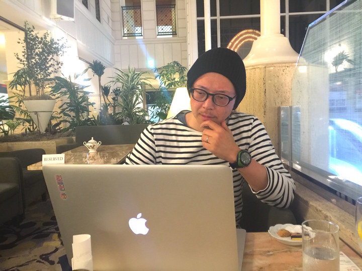 宮川サトシさん。仕事はほとんどカフェでやる。