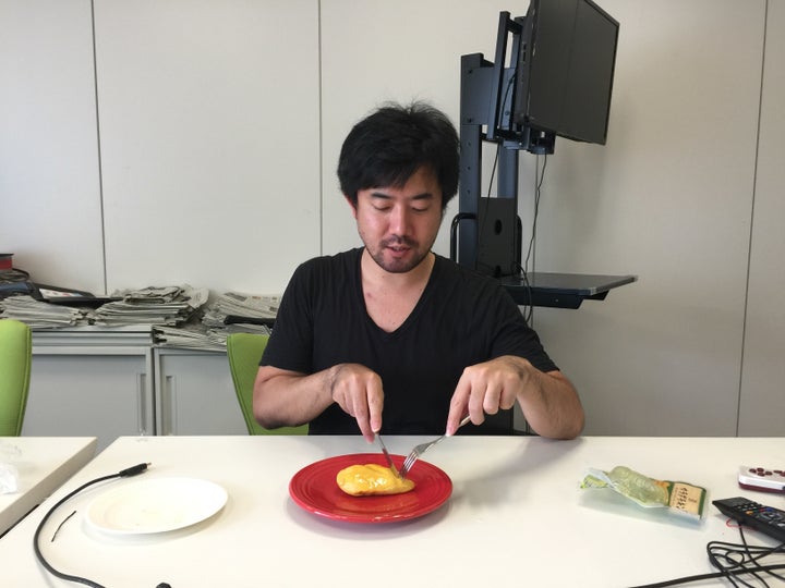 さっそく食べてみる。普段は手づかみでかじるところだが、ナイフとフォークでいただきます。