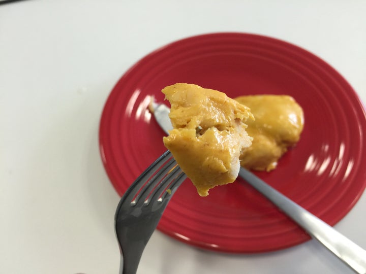 おおおおおおお!これはうまい! しっとり柔らかい鶏肉に、カレーのスパイスの味がよく馴染んでいて、メインのおかずにもなりうる可能性すら感じる。鶏肉の臭みも消えているので、従来のサラダチキンが苦手という人もこれなら大丈夫かも。