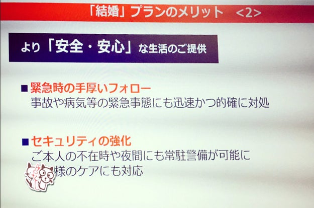 2枚目には「安全・安心」として、「常駐警備が可能に」というセキュリティ部分を押し出しています。