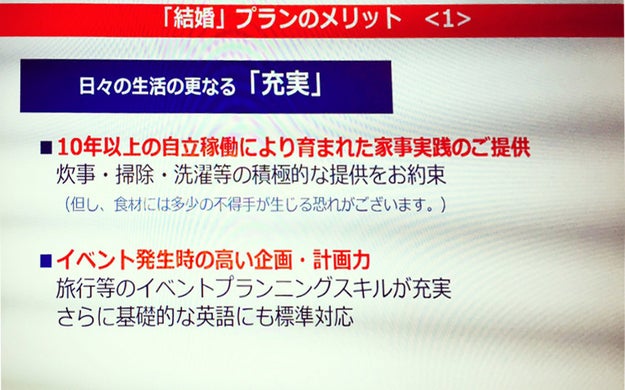 しかし、よく見ると「10年以上の自立稼働により育まれた家事実践のご提供(訳:一人暮らしが長いので家事を手伝えます)」と彼氏さんのアピールポイントが記載されています。あっこれ出来るビジネスマンだ……。