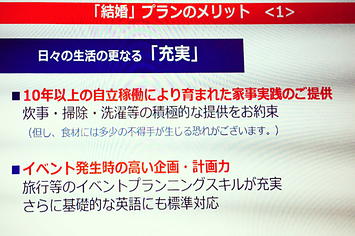 「『結婚』プランのメリット<1>」という完璧なビジネスタイトルのシートです。