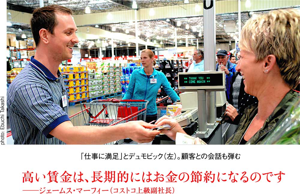 コストコは、賃金相場の高い首都圏でも地方でも、国内の全25店で同じ賃金を支払う。年に2回、ライバル店の賃金を調べ、たった一つの店でも競合しそうになったら全店の賃金を上げるのだという。コストコホールセール・ジャパンの人事責任者、中川裕子は「他社が近づけないよう、さらなる高みを目指しています」と話す。