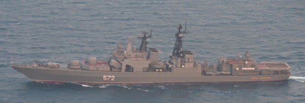 ロシアのウダロイ級駆逐艦(2016年3月撮影) 統合幕僚監部 for BuzzFeed