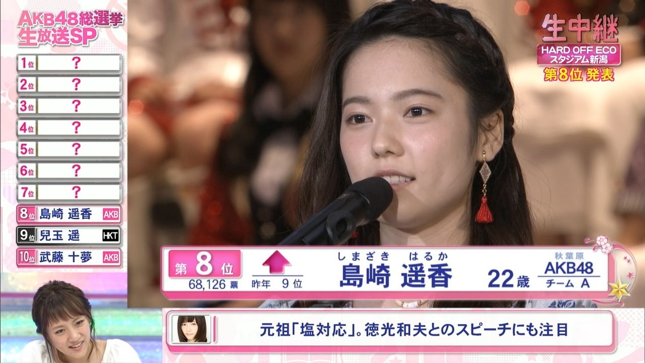 そんな事より、島崎遥香が8位って、AKBのファンはどんな好みしてんだよ。