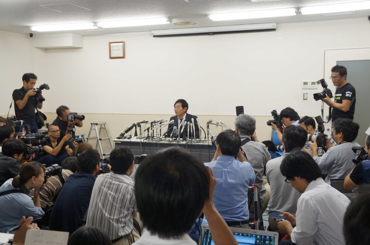 7月8日、渦中の石田純一さんが会見場に現れた。都知事選に出馬するのか。芸能系のメディアも詰め掛け、立ち見も出て150人超のメディア関係者が集まった。