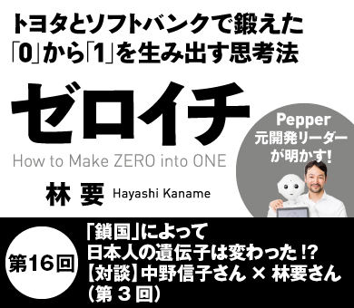 テレビでも話題の脳科学者で『努力不要論』などベストセラーを連発する中野信子さんと、世界初の感情認識パーソナルロボット「Pepper」の元開発リーダーで初著書『ゼロイチ』を出した林要さんによる対談。近年、日本でゼロイチ(イノベーション)が起きない理由とは?そして「好きなことだけ努力する」ために必要なこととは?脳科学者とロボット・プロデューサーがそれぞれの見地から語り合う(構成:前田浩弥、写真:榊智朗)