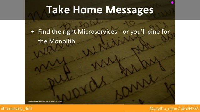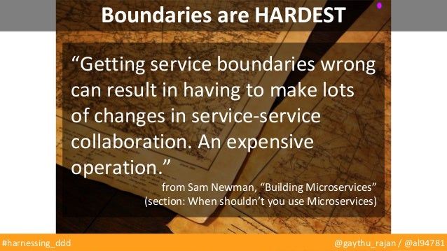 Eric Evans’ Domain Driven Design (DDD) is a core text for all developers, and it's experiencing a renaissance due to the rise of microservices. But are most of us really applying DDD when we're "doing" distributed systems development? Gayathri and Andrew are going to argue that we're not, but we should be – we need to recalibrate.