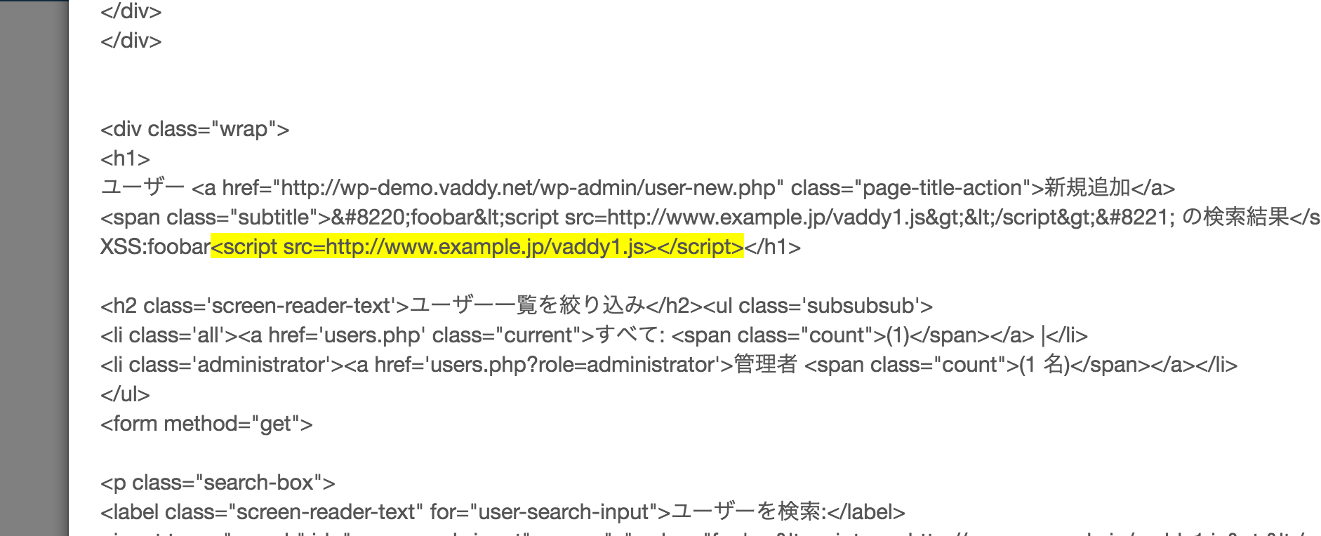 WordPress 4.7のユーザ一覧画面 /wp-admin/users.php にXSSの脆弱性をいれてみたいと思います。