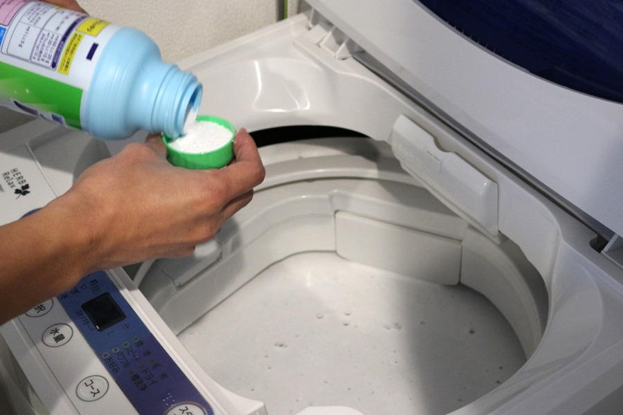 価格.com:お湯が洗浄力を高めてくれるんですね。漂白剤は、どのくらいの量を入れるのですか?