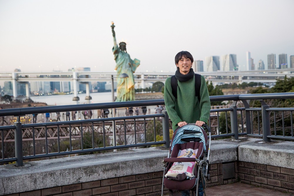 人がいないお台場では、ベビーカーでの移動もスムーズ。