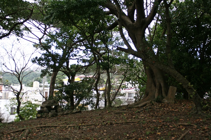 階段を上がって頂上へ行くと、そこは少し開けた場所となっており、広場のほぼ中央に拝所が1基、そして、その後方奥側に2基の拝所がありました。