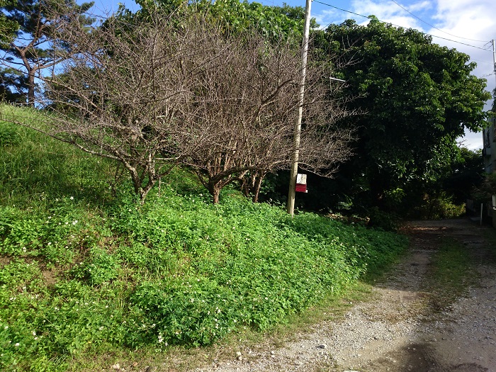 そして、ウタキ北側も、国道から入ってきた脇道からさらに分岐した砂利道がありました。
