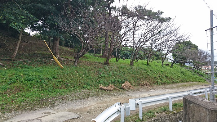 この広場には、この3つの拝所だけだったので、いったん丘を下りて、丘の後方へ行ってみることに。