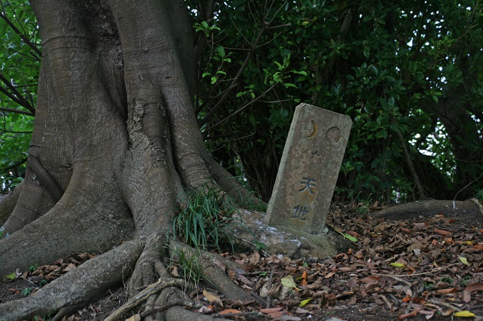 珊瑚石が使用された拝所の後方にも拝所が2つあり、1基は祠状になっており、もう1基は大きな木の根元にあって「天地」と刻まれていました。
