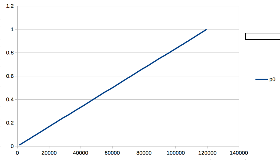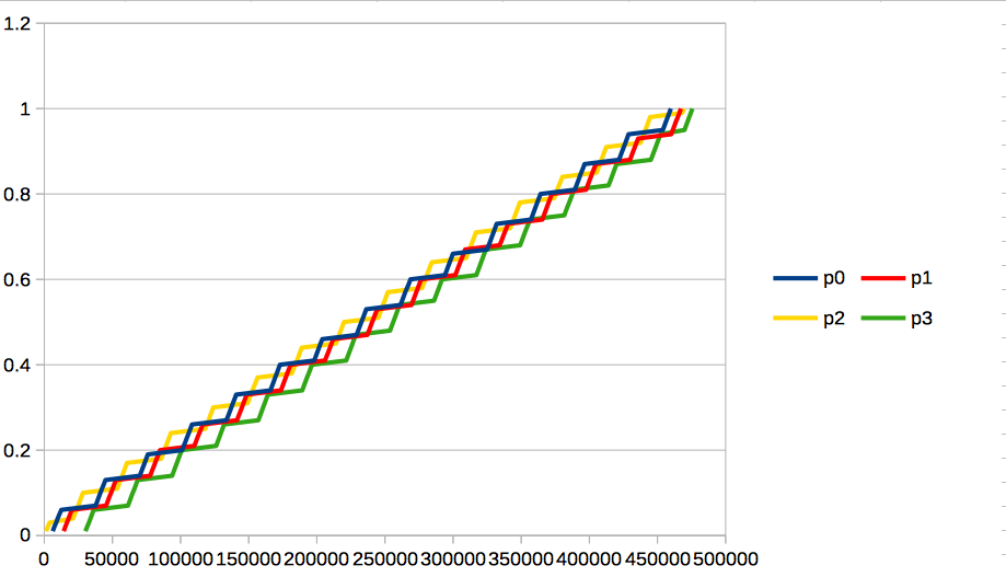 p0以外に動作中のプロセスはいないため、進捗は単純に経過時間に比例します。
