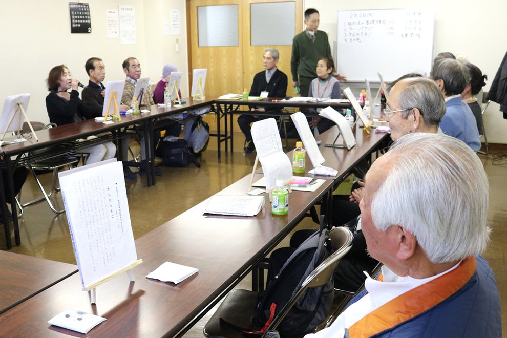 毎回参加者は120人前後。熱心に通う人が多いという。食道発声を会得した先輩が後輩に教えていることもあり、和気あいあいとした雰囲気だ。