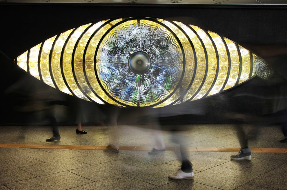 新宿スバルビル地下1階の壁にある「新宿の目」は、彫刻家の宮下芳子さんが1969年に制作した作品。内部には照明が埋め込まれ、目頭と瞳の部分が回転する。