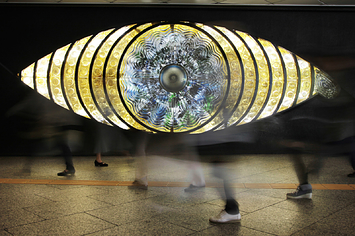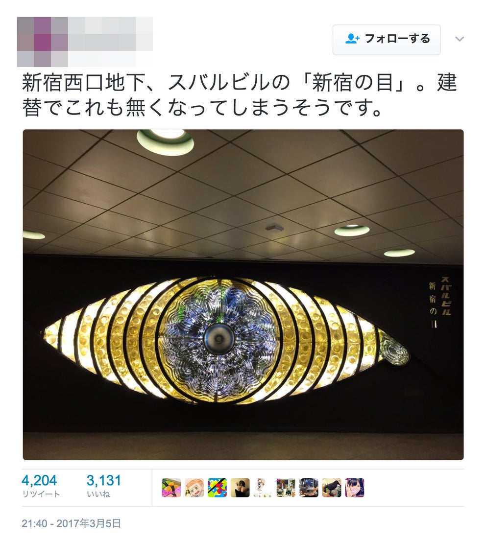 JR新宿駅西口地下のスバルビルの壁面にある「新宿の目」。このオブジェが新宿スバルビルの建て替えにより撤去されるとの情報が3月5日からTwitter上で広まっているが、これはデマだ。