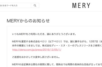 現在、MERYは公開停止中だ ペロリ